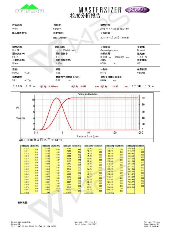 我公司生產的W0.5超細SIC微粉,因其純度高、粒度分布窄、流動性好、穩定性強等優點。